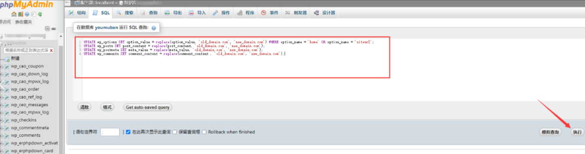 这是为什么呢?因为网站更换域名时,需要进行新旧域名的全面替换操作后才可以正常访问,如果你只替换了一部分就可能会出现网站访问错误,有些相关的自定义栏目尤其是网页图片附件的地址信息等都是通过带有原来域名地址的绝对路径保存在数据库中的。本文就教大家如何更好的替换WordPress网站域名,在数据库中进行相关的新旧域名的替换操作,其实很简单,几个简单的数据库执行语句就可以完成了。